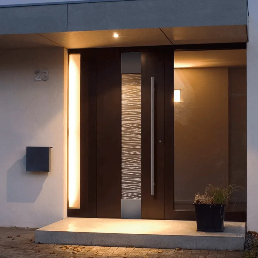 El sistema está diseñado teniendo en cuenta las cargas climáticas de la costa: el doble cierre de juntas y el galce profundo garantizan hermeticidad con viento fuerte y lluvia oblicua. La geometría especial de las cámaras interiores crea una potente barrera térmica, manteniendo el frescor del aire acondicionado dentro de la casa. Es una solución universal para entradas principales donde se requiere resistencia antirrobo de nivel RC2 y aspecto premium.