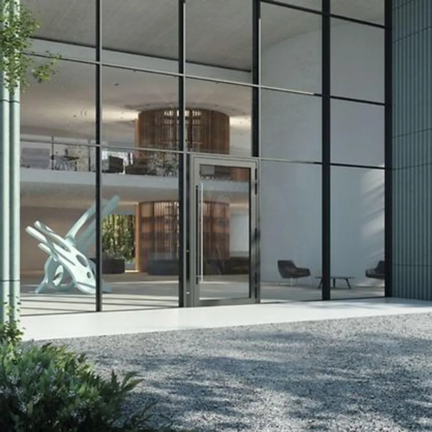 Puerta de entrada de nivel Passivhaus. Sistema insignia con profundidad de 80 mm y rotura de puente térmico aumentada. Combina un diseño coplanar refinado con un aislamiento térmico comparable a las mejores ventanas.