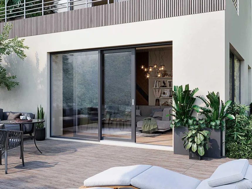 Conecte su hogar con el jardín a través del acristalamiento panorámico. Sistemas correderos HST y PSK de los principales fabricantes europeos — deslizamiento suave, excelente aislamiento térmico y vistas impresionantes.