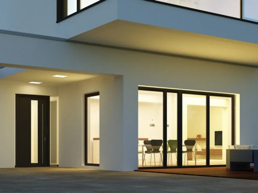 Esta solución permite prescindir de los frágiles puentes térmicos de poliamida utilizados en el aluminio con rotura de puente térmico. El aislante es el propio perfil macizo de PVC, rígidamente unido al metal. Visualmente, la puerta parece un producto de aluminio premium: líneas sobrias, pintura en polvo en cualquier color RAL y las características uniones de esquina sin soldaduras. Es la elección ideal para la arquitectura moderna, donde se requiere la estética fría del metal, pero el ahorro de energía debe mantenerse al nivel de una casa pasiva.