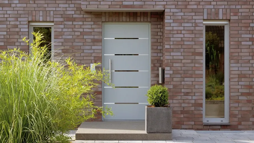 Puerta de entrada de gama alta. Sistema energéticamente eficiente de 82 mm con tres juntas de sellado para casas pasivas.