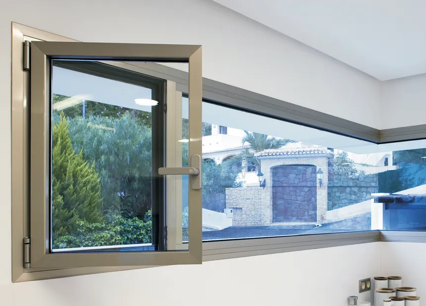 Cortizo COR 60 es la elección ideal para quienes prefieren la estética y durabilidad del aluminio, pero no están dispuestos a sacrificar el confort del hogar. No es el aluminio frío que se instalaba en el siglo pasado. El sistema está equipado con tecnología RPT (rotura de puente térmico): las partes exterior e interior del perfil están unidas por inserciones de poliamida que cortan la transmisión del frío. El resultado es una ventana elegante y rígida que no se congela y soporta excelentemente las cargas estáticas.