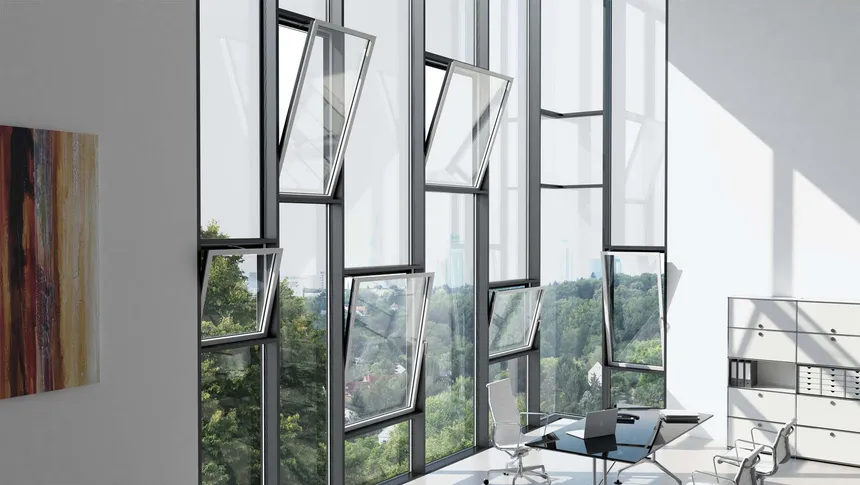 El perfil se integra perfectamente con el motor Schüco TipTronic SimplySmart. Esto permite que las ventanas se abran y cierren automáticamente, ventilen la casa según horario o sensores, manteniendo el aspecto de una ventana normal: todos los motores están ocultos dentro del marco.